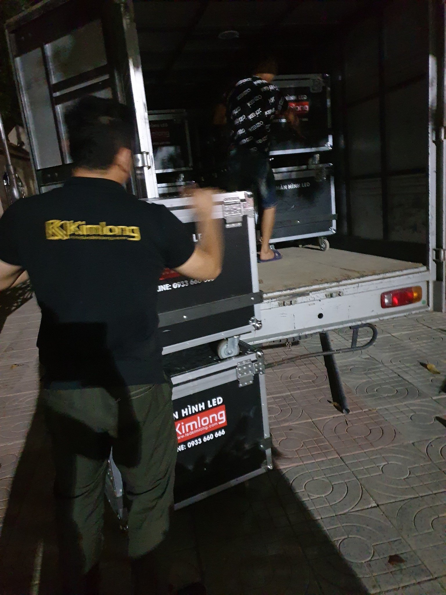 Dù trong điều kiện buổi tối, đội ngũ nhân sự của LED Kim Long vẫn làm việc với tinh thần trách nhiệm cao. Từng kiện hàng, từng tủ LED được kiểm tra kỹ lưỡng, đóng gói cẩn thận và vận chuyển an toàn đến địa điểm lắp đặt.