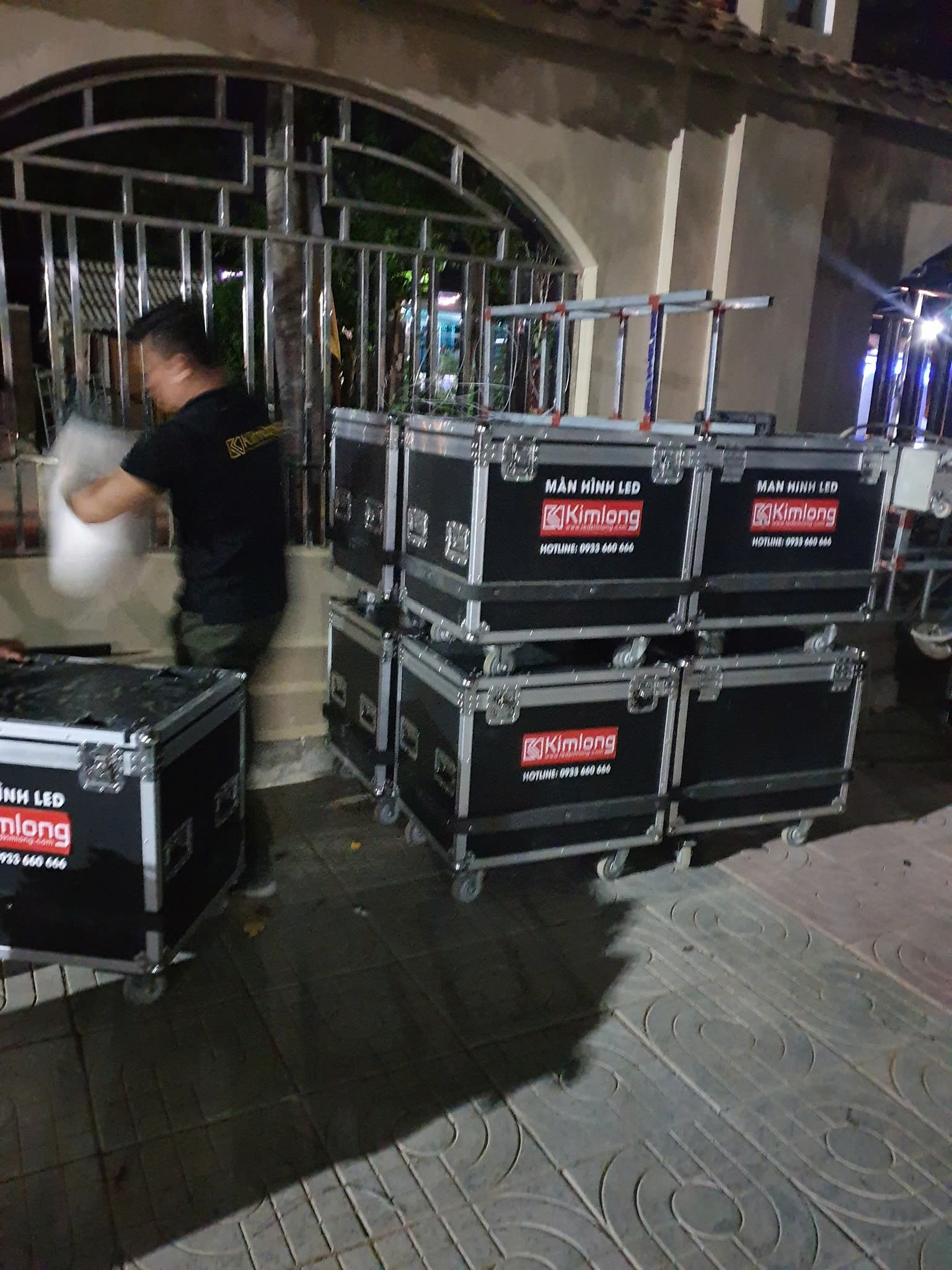 Hình ảnh dưới đây ghi lại khoảnh khắc đội ngũ kỹ thuật viên Kim Long đang bốc xếp, kiểm tra và vận chuyển các tủ LED chuyên dụng chuẩn bị cho một dự án trình chiếu quy mô lớn.